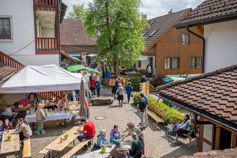 Offene Türen: Das Güetli entdecken, Rundgänge und Besichtigungen, Flohmarkt, Blumeneinkauf ab Treibhaus, Gartenkafi mit Pflanzideen, Spielplatz, Hüpfburg, Kinderreiten und Streichelzoo, Pommes, Bratwurst und Pizzaplausch sowie andere Leckereien.